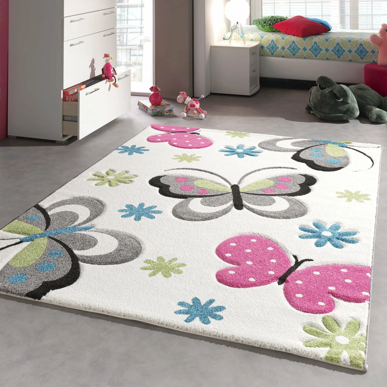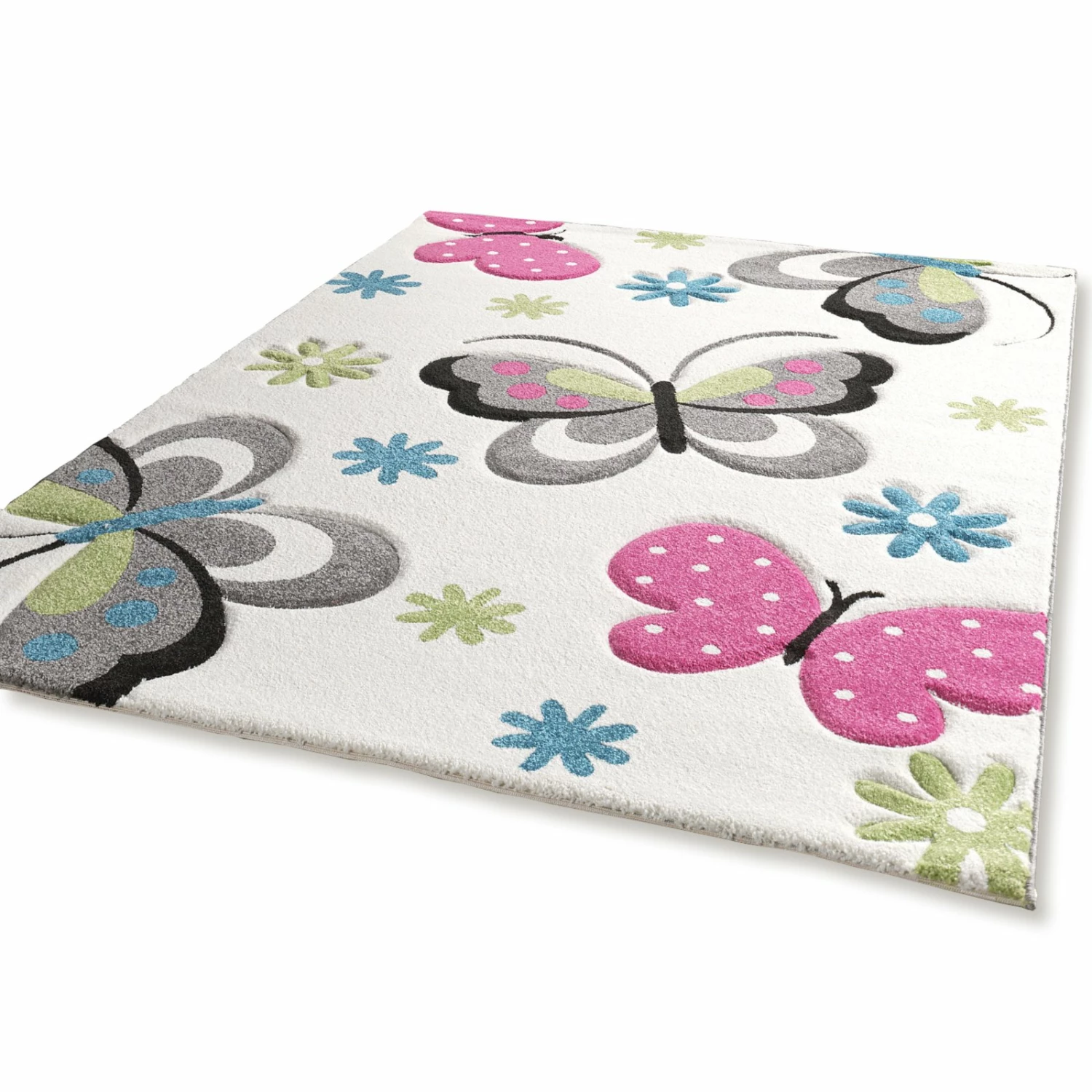 Teppich – weiß – Schmetterlinge – 80×150 cm