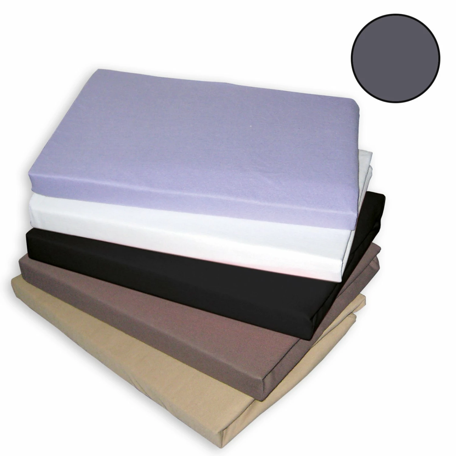 Topper-Spannbettlaken in der Farbe Graphit für Toppermatratzen ab 100 x 200 cm. Dieses Spannbetttuch besteht aus temperaturausgleichendem Jersey-Stoff. Es ist leicht, elastisch, geschmeidig und eignet sich perfekt für den Sommer.