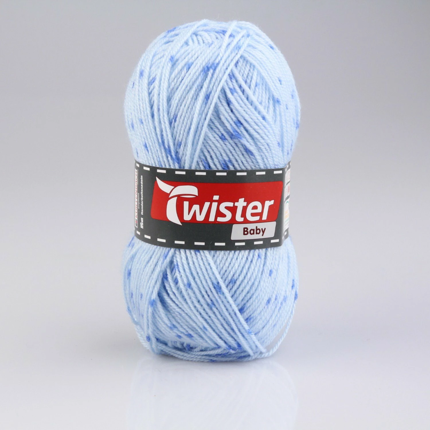 Die blau-gefleckte Wolle eignet sich super zur Herstellung von Baby- und Kleinkindertextilien wie beispielsweise Mützen, Pullis, Hosen und vielen weiteren Accessoires. Die Wolle ist bis 40 Grad waschbar und ausgelegt auf die Nadelstärken 2-3 .