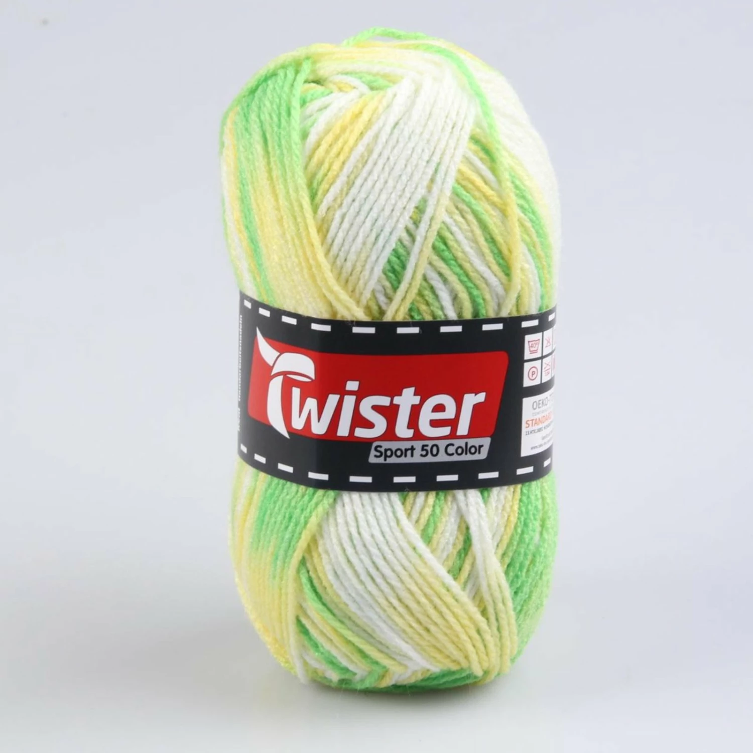 Wolle TWISTER SPORT 50 COLOR – weiß-neongelb-neongrün – 50g